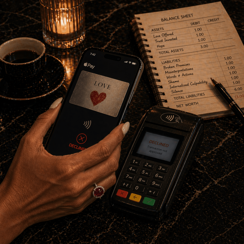 A dilapidated heart corroded by broken promises and dashed hopes. The misinterpretation of each move made. The contradiction of words and actions. The shame of self-expression and internalization of culpability. Love is a currency declined at the exchange rate of silence.